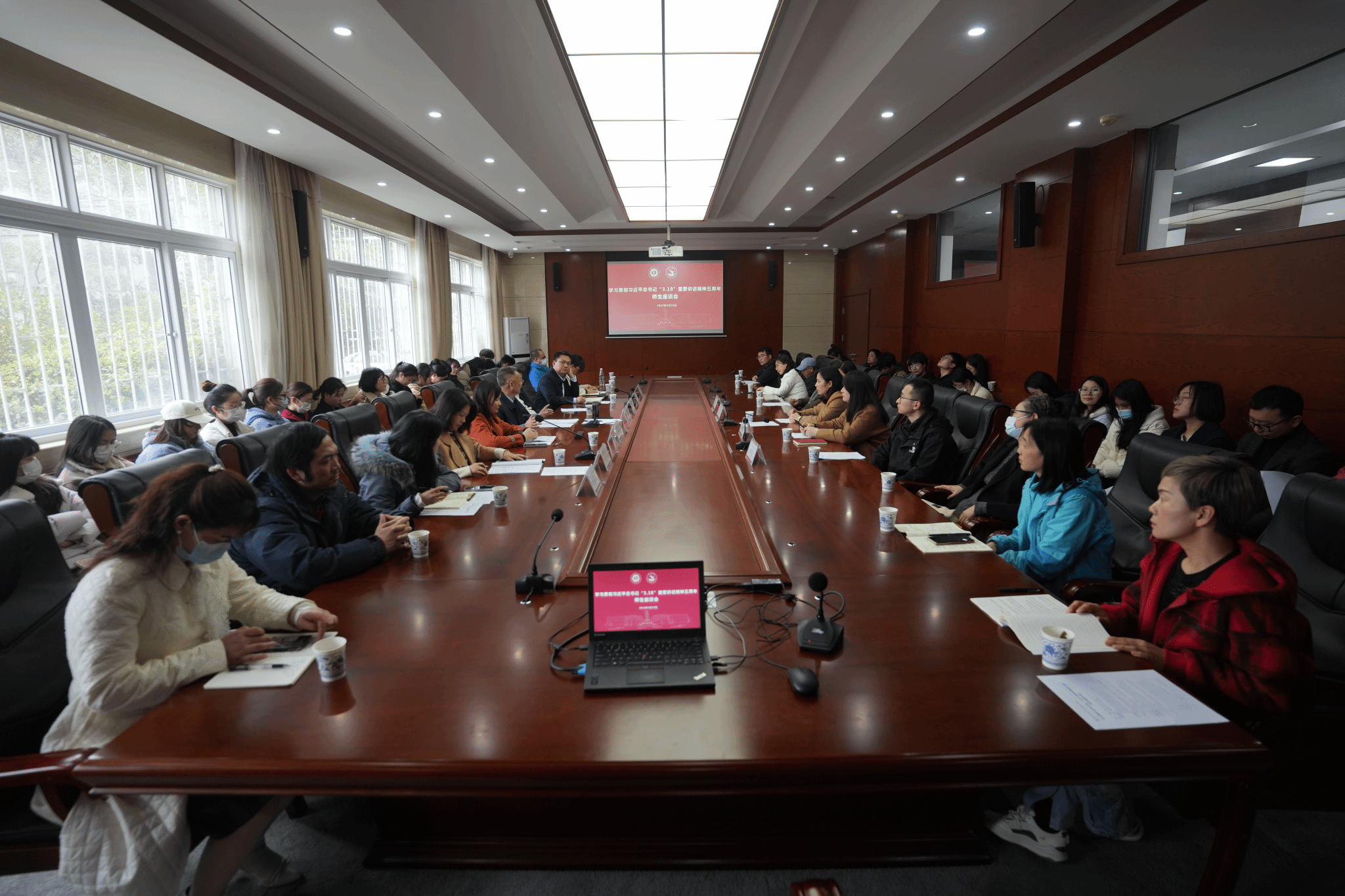 学校召开学习贯彻习近平总书记“3.18”重要讲话精神五周年师生座谈会暨“纺大思语”论坛