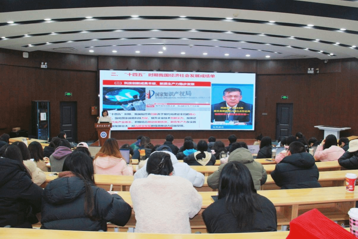 邹茜首先介绍了党的二十届四中全会的基本情况,系统梳理了“十四五”时期我国经济社会发展取得的十二方面重大成就,针对“十五五”时期国内外发展形势,她指出:“我国发展仍处于战略机遇和风险挑战并存的时期,必须充分发挥四大优势,紧扣七大板块精准发力,以自身工作的确定性有效应对外部环境的不确定性”。在解读“十五五”行动纲领时,邹茜重点阐述了《建议》中提出的指导思想、基本原则、发展目标以及十二项重要部署。在谈到科技创新时,邹茜以学校全国重点实验室的建设发展为例,阐释了我国科技创新体系从“制造中心”向“创新中心”的历史性跨越,生动体现了我国科技创新体系日益完善、科技成果转化显著加速的高质量发展态势。最后,邹茜对博彩网站排行 学子提出三点期望:一是精研理论、筑牢信仰,做思想上的“先行者”,通过系统深入“学”,联系实际“思”,旗帜鲜明“讲”,在“学深悟透”上达到新高度;二是聚焦专业、练就本领,做学业上的“深耕者”,通过构建复合型知识体系,强化实践与研究能力,锤炼严谨求实的学风,用坚实的专业能力作为支撑;三是胸怀天下、投身实践,做行动上的“实干者”,通过将个人规划融入国家坐标,从身边小事践行担当精神,勇于在挑战中磨砺成长,在时代洪流中书写无悔青春。