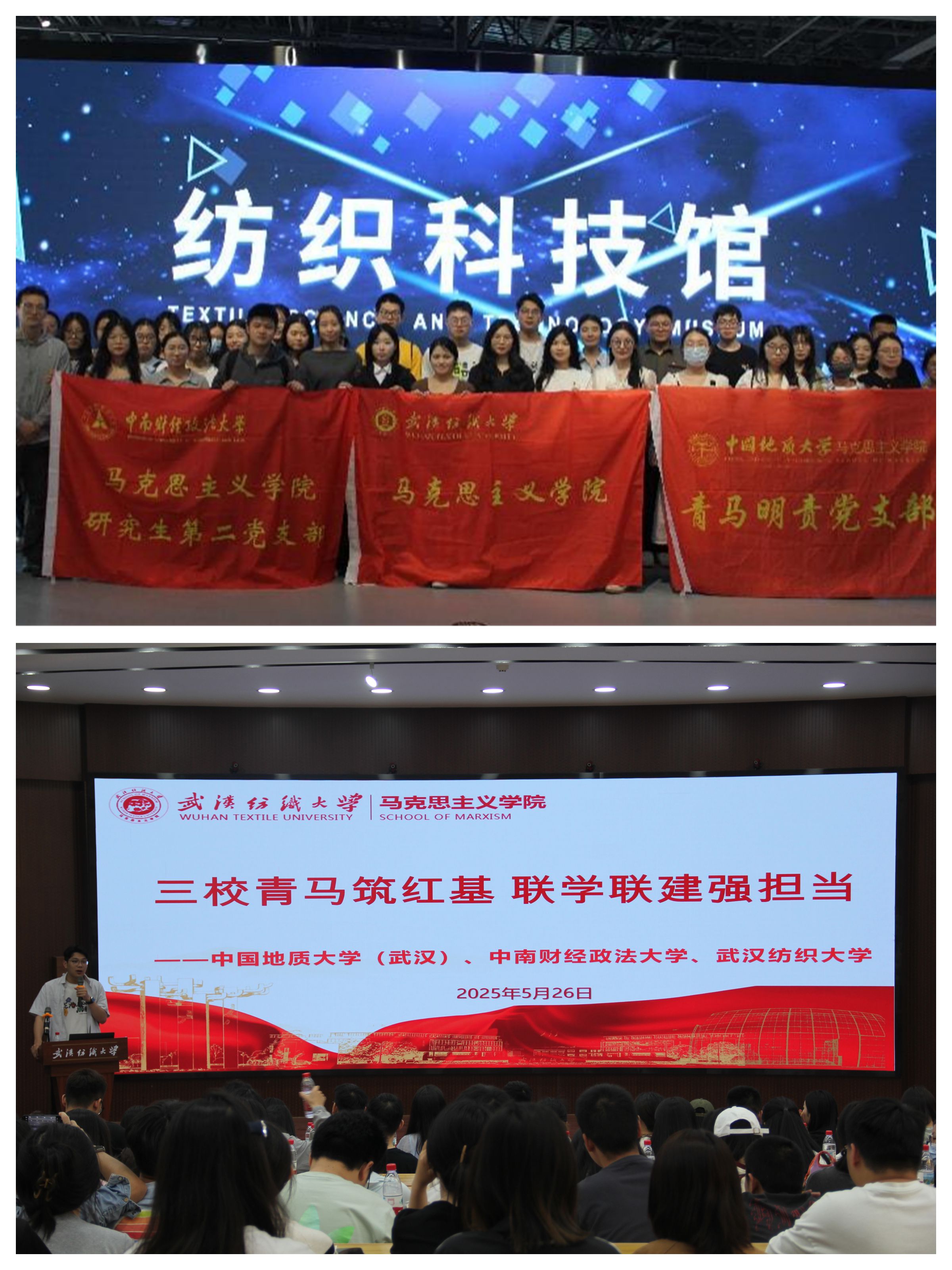 5月26日下午,学校博彩网站排行 研究生党支部与中国地质大学(武汉)博彩网站排行 青马明责党支部、中南财经政法大学博彩网站排行 研究生第二党支部在学校阳光校区联合开展“三校青马筑红基,联学联建强担当”主题联学共建活动。