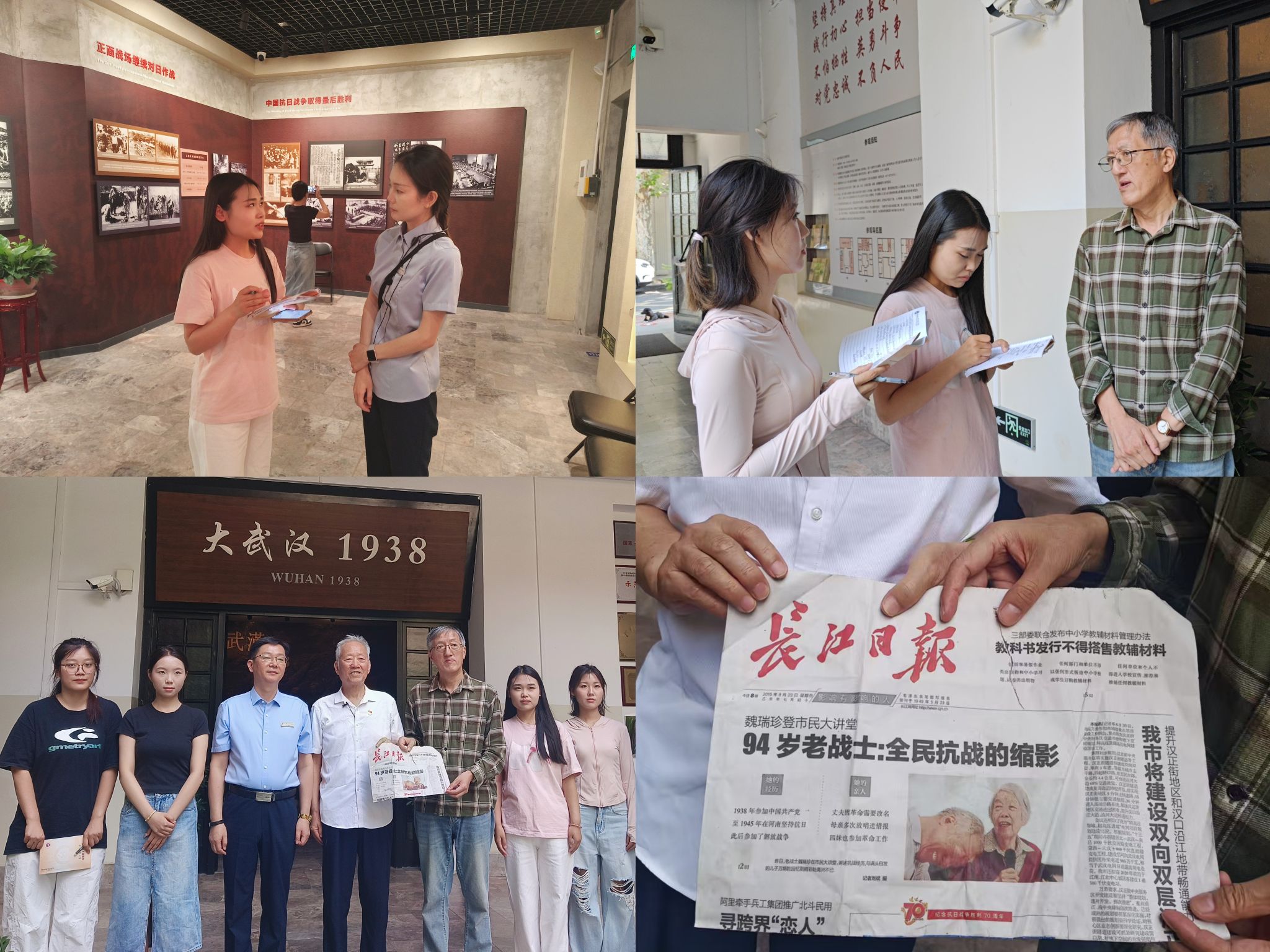 参观结束后,师生们采访了两位革命后人。资深媒体人、作家余坦坦先生讲述了他舅舅葛林、姨父李玉治和父亲余良士的故事,他们均为革命事业作出贡献,余坦坦寄语青年正视历史,将精神财富转化为动力。汉阳区工商联原办公室主任万炳乾先生讲述了父母的抗战故事,他们均于 1938 年参加八路军,万炳乾希望青年传承和弘扬先辈精神,勿忘历史,珍惜当下,努力进取。