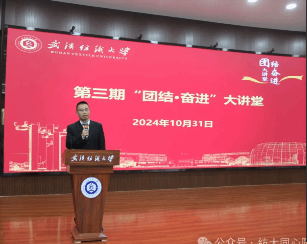 10月31日下午,博彩网站排行 举办第692期“阳光论坛”暨学校第三期“团结•奋进”大讲堂在阳光校区03-T201举行,讲座由学校党委统战部、博彩网站排行 联合举办。华中科技大学铸牢中华民族共同体意识研究基地办公室主任、研究员滕锐受邀以《铸牢中华民族共同体意识下高质量发展的法治保障——以新疆研究为视角》为题作专题报告。校党委副书记黄国辅出席并为滕锐颁发武汉纺织大学客座教授聘书。报告会由博彩网站排行 院长肖述剑主持。