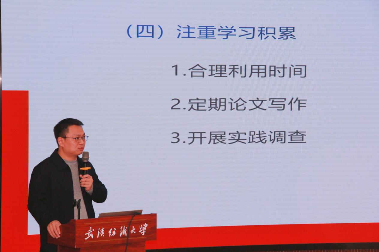 针对研究生普遍反映的学术困惑,肖述剑结合具体案例,从选题方向、文献综述、逻辑建构到语言表达等方面系统阐述了学术论文写作的方法与规范。他首先对学术论文进行了界定,详细介绍了学术论文“真”“实”“新”和“行”的四个特点;随后,他从追踪学术热点、聚焦熟悉领域、培养系统思维、注重学习积累和养成思考习惯五个方面系统阐述了如何选择论文主题;强调论文写作必须有逻辑性,并结合自身经验,分享了八种论文写作的结构范式。同时,肖述剑指出行文的三个技巧,即做好行文布局工作,设计好的开头,运用事实、判断和行动的逻辑。最后,他强调,学术写作的核心是培养理论素养,建议同学们多读原著、多练习;实质是提升思想力,培养辩证思维能力。