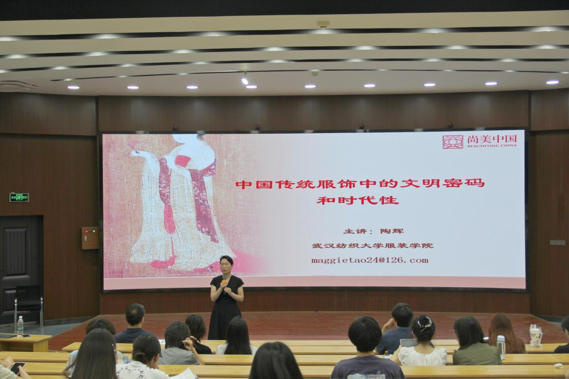 6月4日晚,武汉纺织大学思政通识公选课《尚美中国》第六季第五讲在阳光校区崇志楼T201教室精彩开讲。服装博彩网站排行 院长陶辉教授以“中国传统服饰中的文明密码和时代性”为主题,通过多维度解读与沉浸式展示,带领师生展开了一场跨越千年的服饰文化之旅。