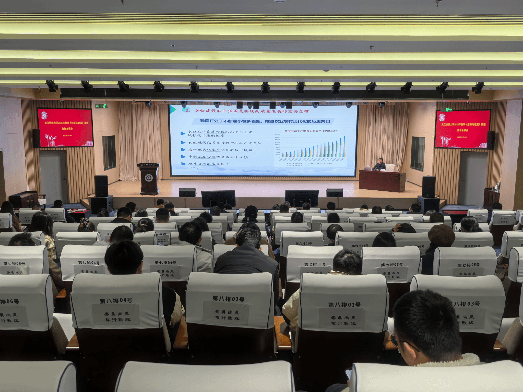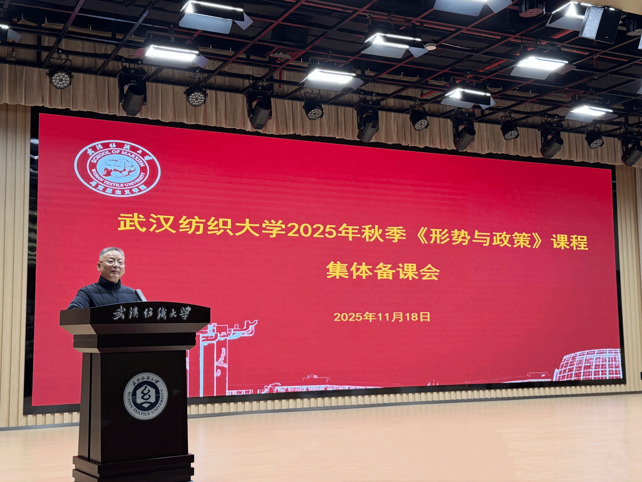 11月18日上午,武汉纺织大学2025年秋季学期《形势与政策》课集体备课会在阳光校区健全会堂稳健厅举行。校党委副书记、副校长罗锦银出席备课会并作专题讲话,华中农业大学博彩网站排行 副院长、乡村振兴研究院副院长霍军亮教授作“农业强国”主题辅导报告,学校全体《形势与政策》任课教师参加会议,博彩网站排行 党委书记邹茜主持备课会。