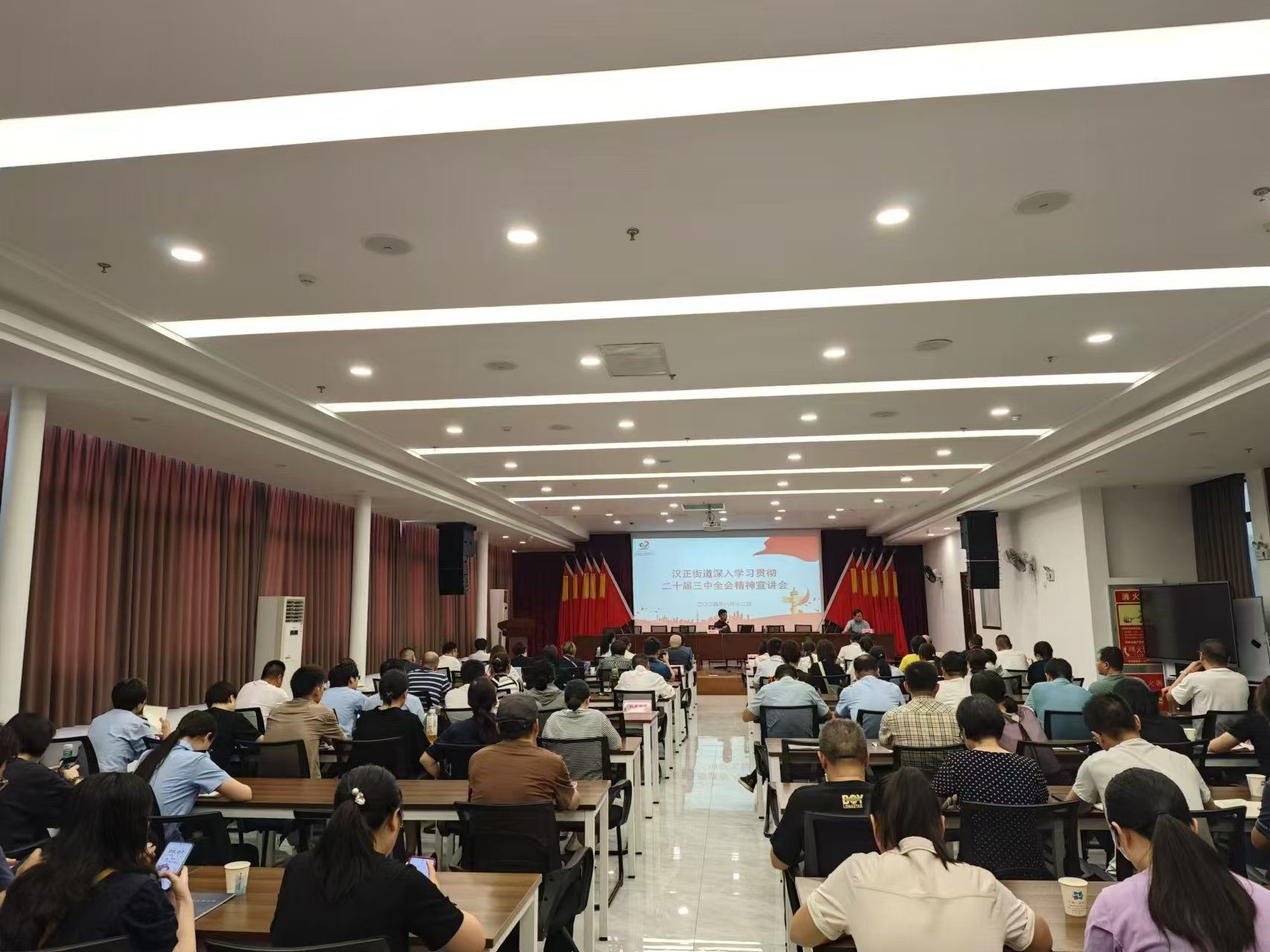 武汉纺织大学教授喻学林、常沛围绕二十届三中全会的深远意义、主要内容以及如何贯彻落实全会精神等方面,开展了一场精彩的宣讲。汉正街道机关第二党支部书记表示:“深入学习贯彻党的二十届三中全会精神对基层工作有着重大意义。我们党员干部应始终以全会精神为指引,不断加强学习,深入领会全会精神实质和内涵,提高自己的政治觉悟和理论水平。同时,也要积极参与到改革实践中,立足自身岗位,为提升人民群众获得感、幸福感、满足感贡献自己的力量。”