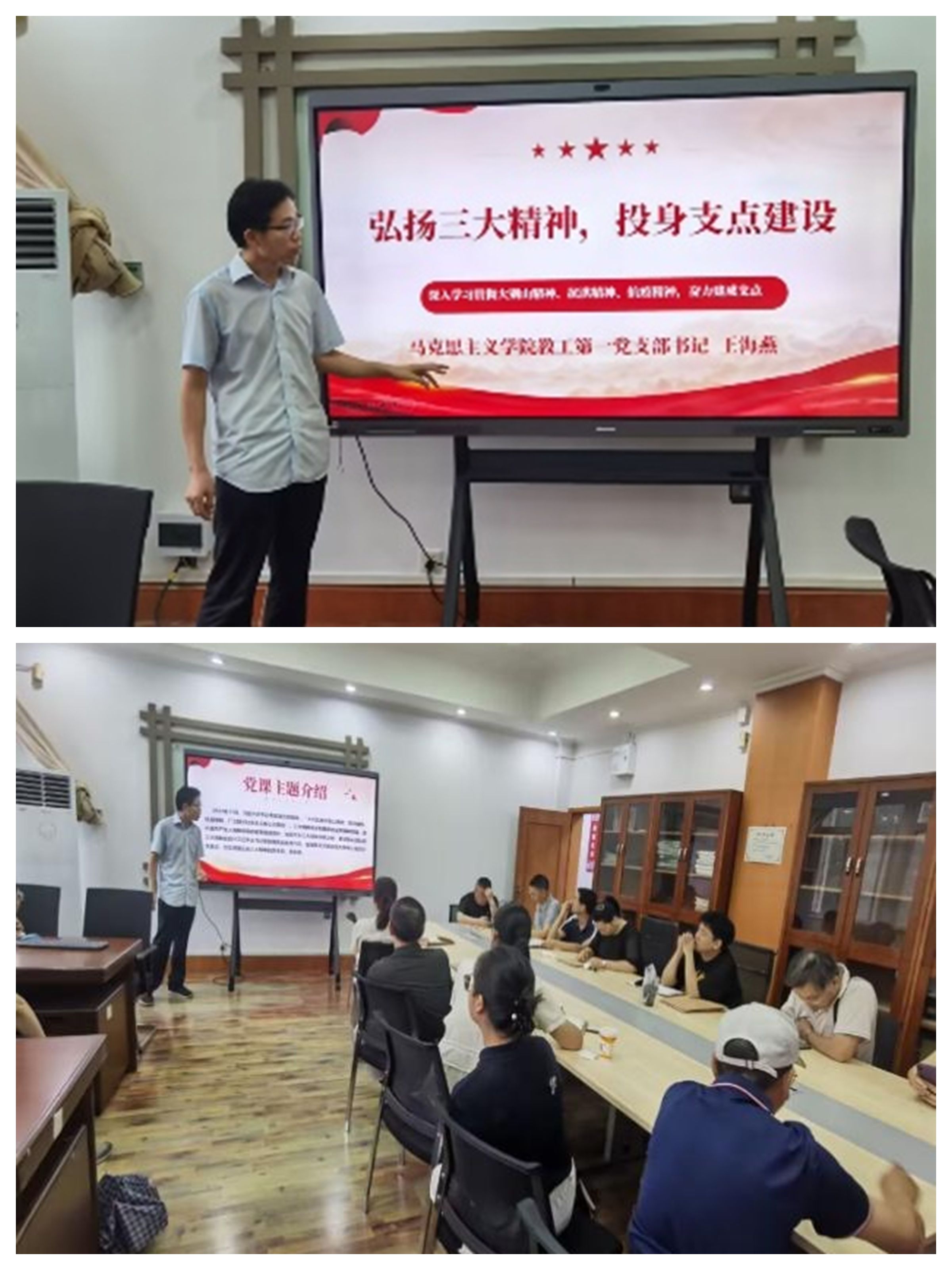 6月19日上午,博彩网站排行 教工第一党支部在南湖校区东配楼208会议室举行6月份主题党日暨党支部书记讲“弘扬三大精神 投身支点建设”专题党课活动。会议由支部书记王海燕同志主持。