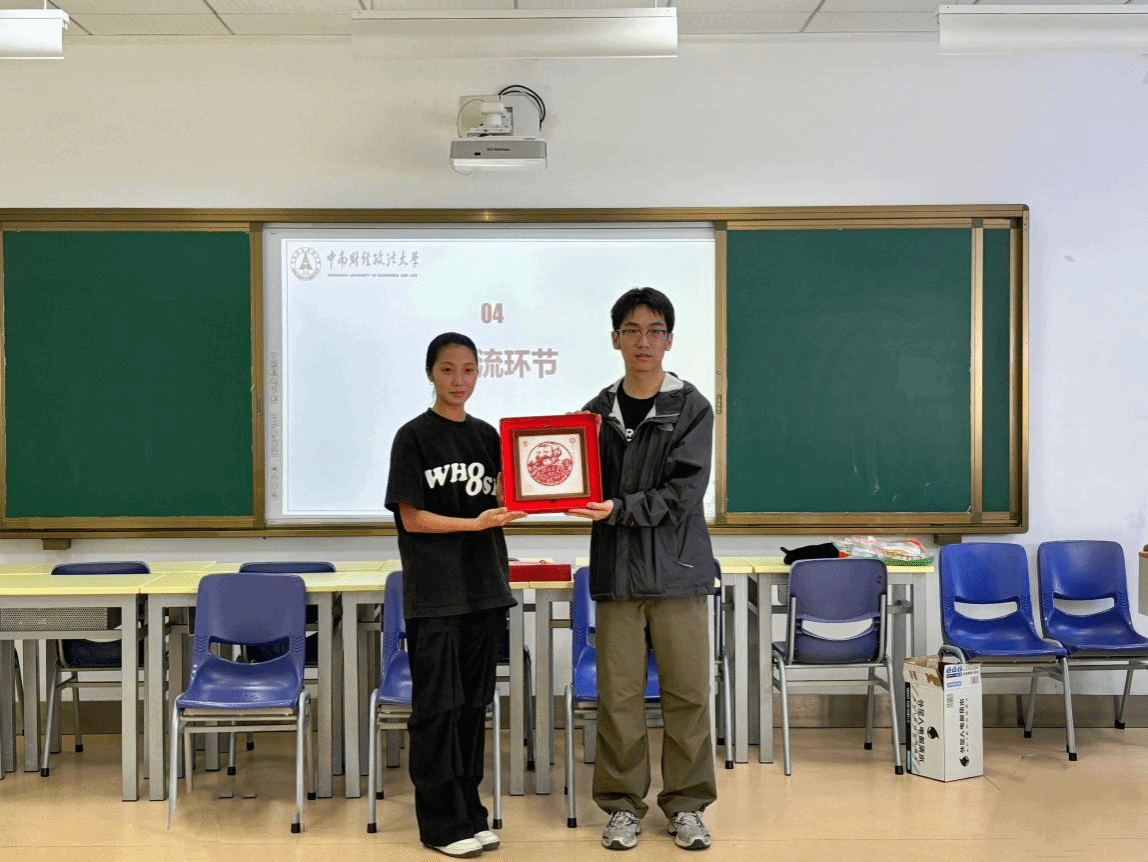 交流会过程中,殷一凡向中南财大研会赠送博彩网站排行 “武纺青马”非遗文创剪纸纪念品,寓意与中南财大博彩网站排行 友谊之树常青。