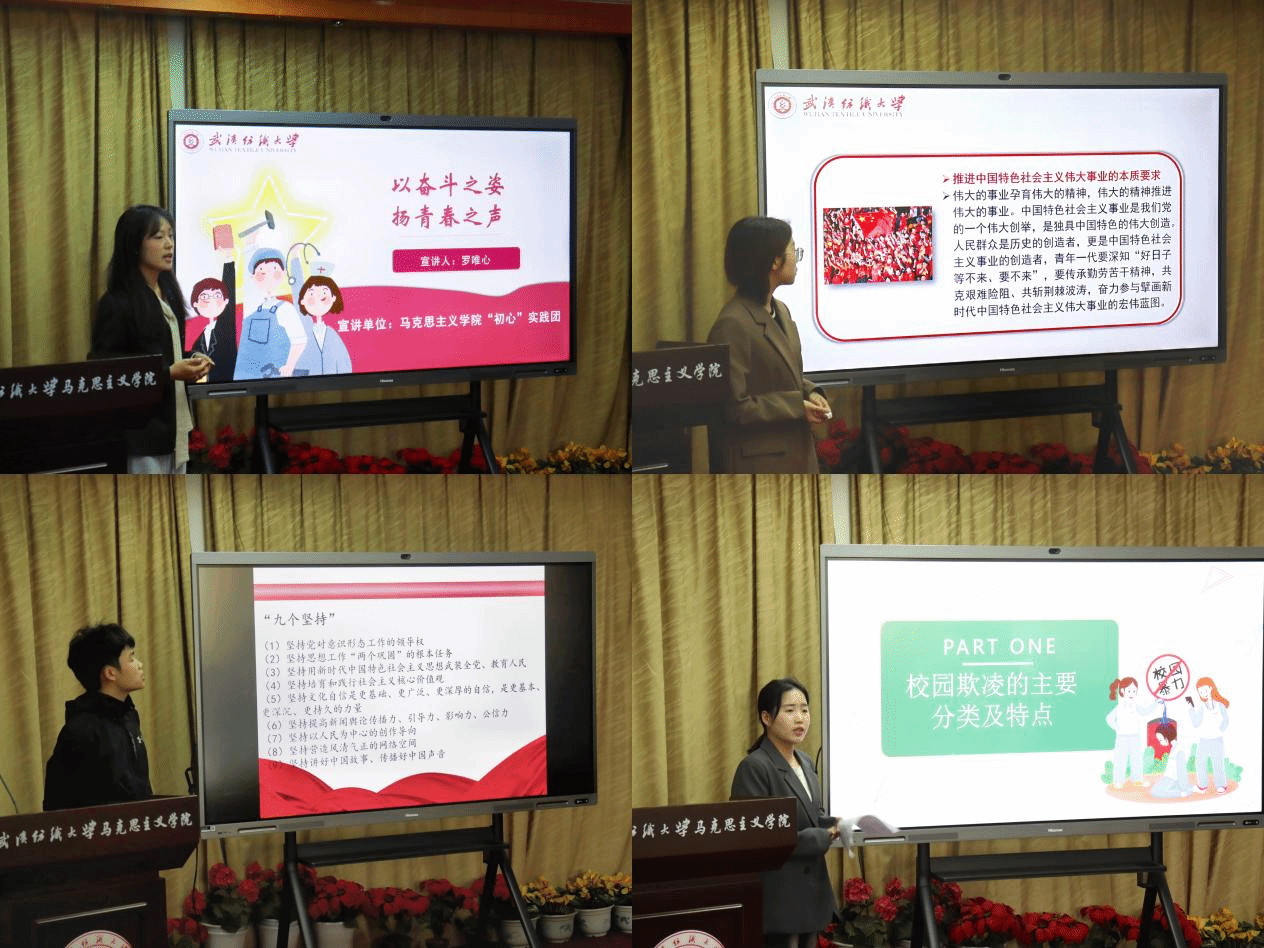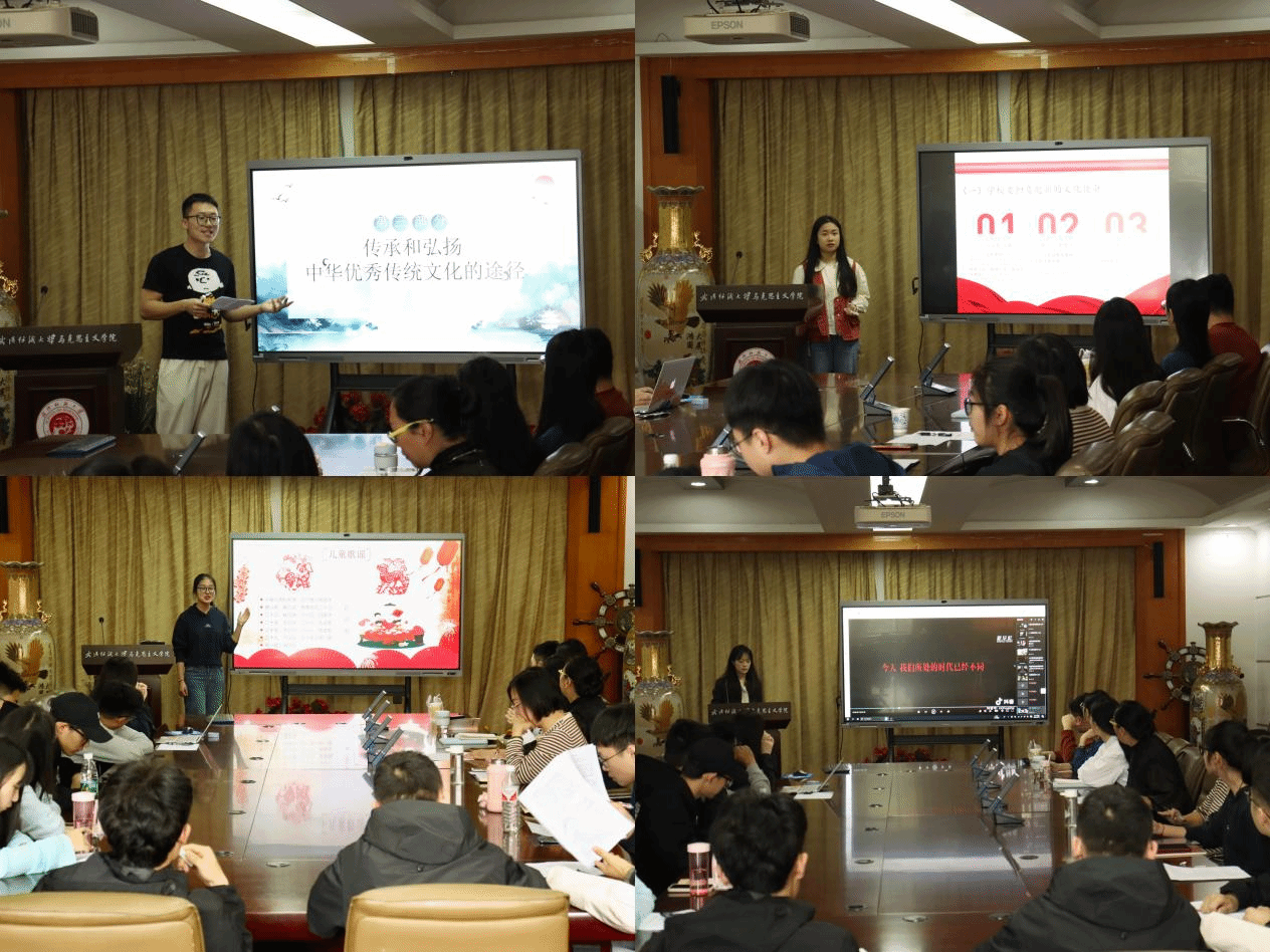 实践团成员分别围绕“锤炼奋斗精神,争做奋斗青年”“寻脉传统年味,弘扬民俗文化”“深学细悟习近平文化思想,切实担负起新的文化使命”“习近平法治思想—校园霸凌教育”“做中华优秀传统文化的传承者和弘扬者”“传承红色基因、点燃精神火炬”等六个主题依次展示自己的备课成果。