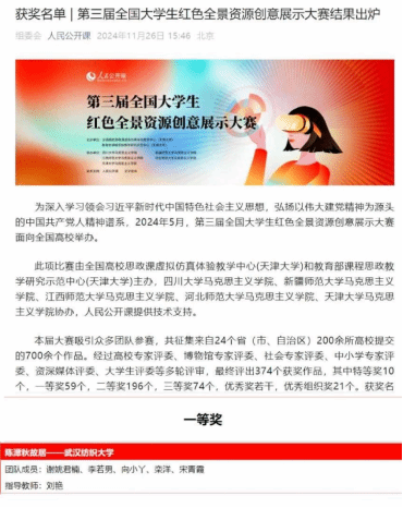 全国一等奖!博彩网站排行 在第三届全国大学生红色全景资源创意展示大赛中斩获好成绩