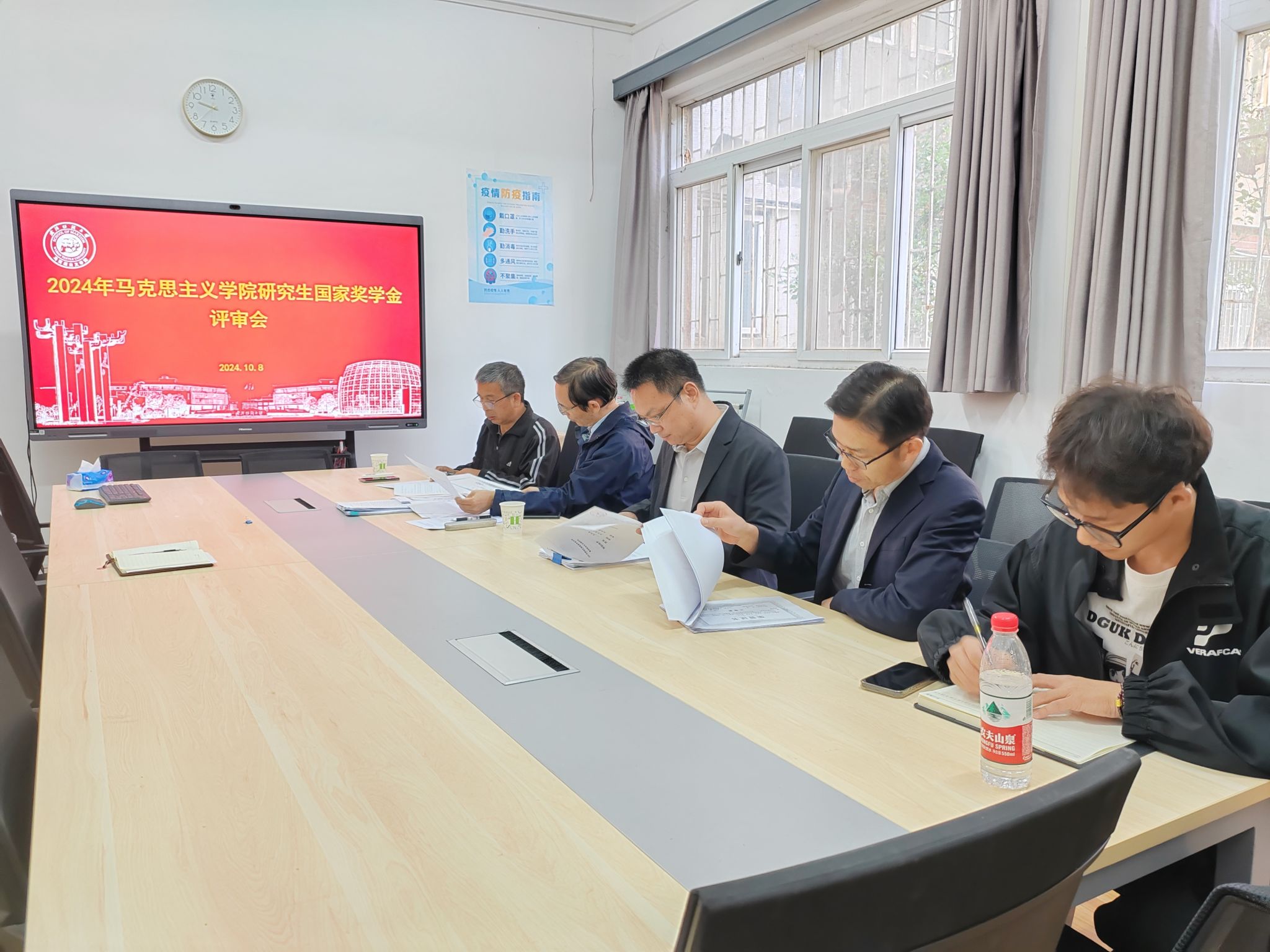 10月8日上午, 博彩网站排行 在南湖校区东配楼115会议室召开国家奖学金评审会。博彩网站排行 院长肖述剑出席评审会,博彩网站排行 教授委员会成员杨豹、商卫星、王海燕,以及2023级研究生谢姚君楠组成的评审小组开展奖学金评定工作。